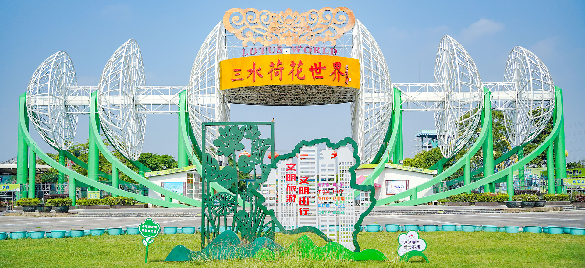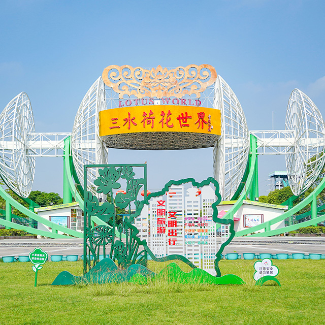 三水荷花世界坐落于位于佛山市三水区云东海街道,距广三高速三水出口2km,距三水北站800m。全园占地面约500亩,由荷花生态科普区、荷花世界水天地、欢乐世界、儿童乐园、荷香文创街五大区域组成。于2000年7月8日正式开业,多年来致力发展荷花种植技术的栽培研究、荷花新品种的选育和培育,以及荷莲产业的开发和深加工,获得了较好的成绩,是目前世界上规模最大、荷花品种最丰富,集古典建筑、雕塑、观景长廊、荷文化展示于一体的荷花生态专类园, 荷花世界以荷花文化为主题,以绿色为经,以红色为纬,是国家AAAA级旅游景区,先后被评为 “佛山新八景”、”三水新八景”,广东省农业科技园,广东省科普教育基地,广东省婚庆拍摄基地,佛山市首批青少年研学基地。
